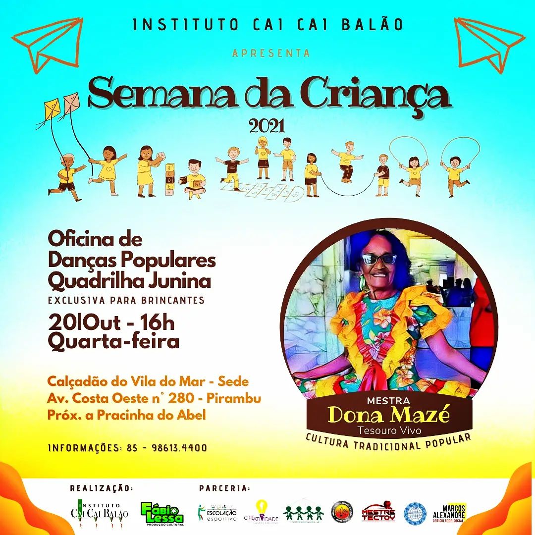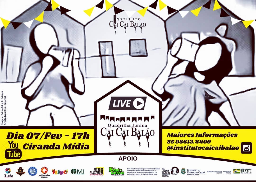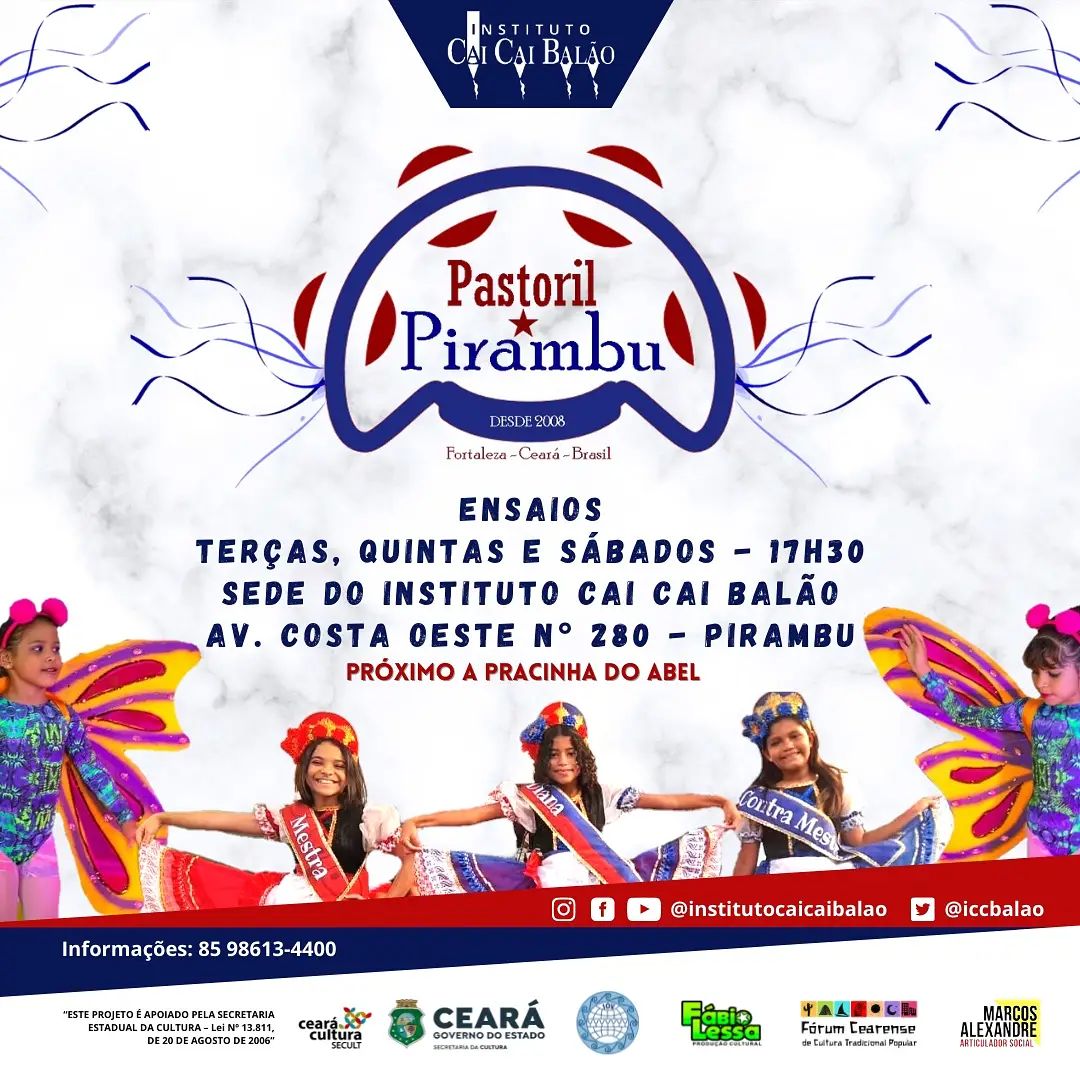 O Instituto Cai Cai Balão nasce em 2003 movido por um sonho coletivo: preservar, fortalecer e difundir a cultura popular brasileira, especialmente no Grande Pirambu, uma das maiores e mais potentes comunidades de Fortaleza-CE. Desde sua origem, o Instituto carrega o compromisso com a formação artística, o resgate das tradições e a inclusão social de crianças e adolescentes, transformando vidas por meio da arte.Sua criação está diretamente conectada à história da Quadrilha Junina Infantil Cai Cai Balão, que desde 1980 encanta o Brasil com apresentações vibrantes, autênticas e carregadas de emoção. Muito além de uma manifestação cultural sazonal, a quadrilha sempre foi um espaço de aprendizado, acolhimento, arte e cidadania para inúmeras crianças do Pirambu, muitas delas em situação de vulnerabilidade social.