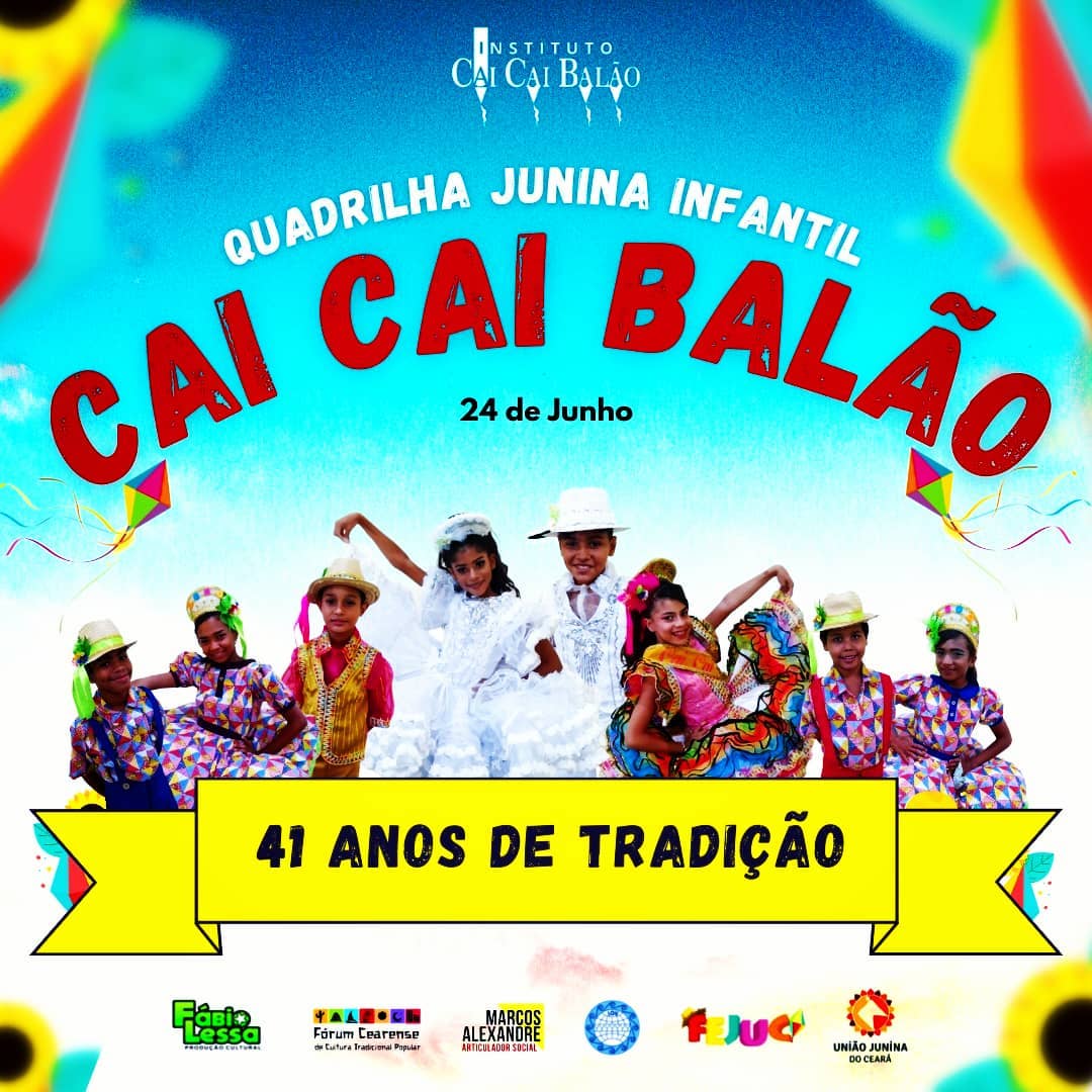 Quadrilha Junina Infantil Cai Cai Balão – Fundada em 24 de junho de 1980, é uma das quadrilhas infantis mais antigas e emblemáticas do Brasil, referência de tradição, beleza e resistência cultural.