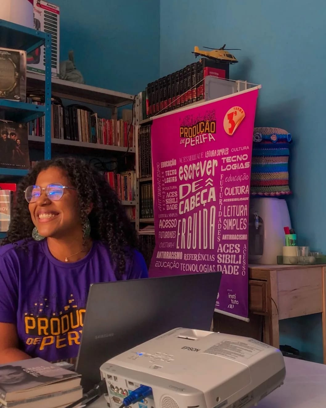 Sou filha de Maria e Eneas, nascida em Coelho Neto/MA e cria de Sobral/CE desde 2001. Mulher cis, preta, poetisa, produtora cultural e, também, psicóloga graduada pela UFC-Sobral. Ao longo de minha trajetória enveredei pelos caminhos das poetivivências e da produção cultural de perifa.
