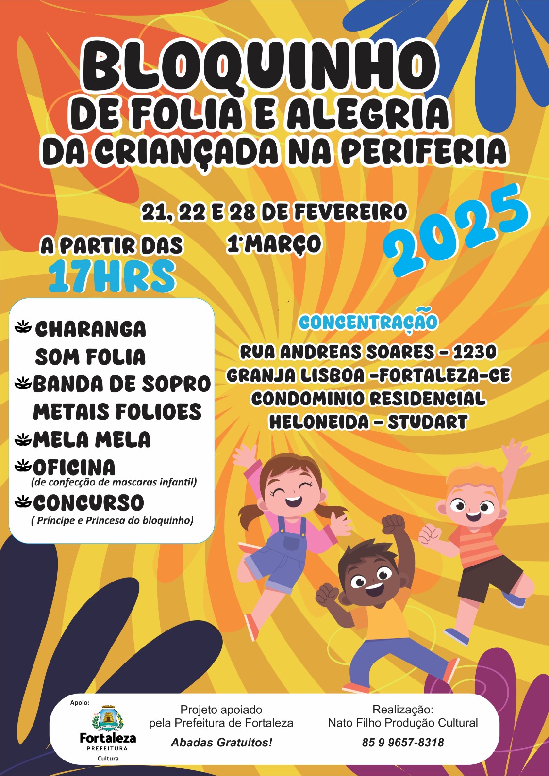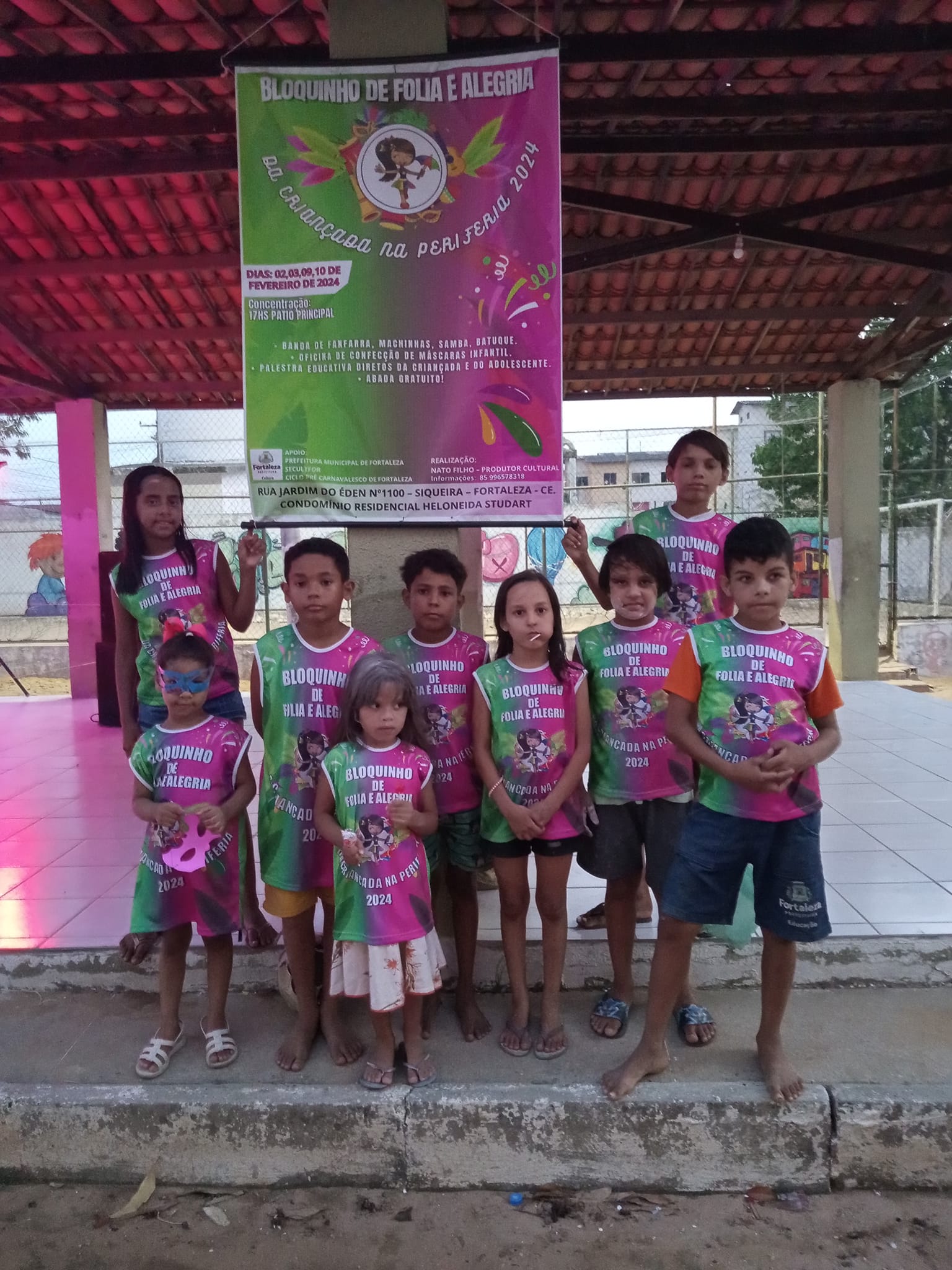 o bloquinho carnavalesco de folia de alegria da criançada na periferia, tem sede no Siqueira, onde reúne 200 crianças e adolescentes em 4 dias para pré carnaval de rua de fortaleza, onde acontece uma programação cultural dedicada ao publico destacando aqui que nossa sede fica no condomínio residencial heloneida studart, areá periférica da cidade de fortaleza, onde seu diretor nato filho e coordenação buscam atividades para interação da população onde vivemos.preservando e fortalecendo a difusão,fomento e culminância das tradições carnavalescas de nossa cidade.
