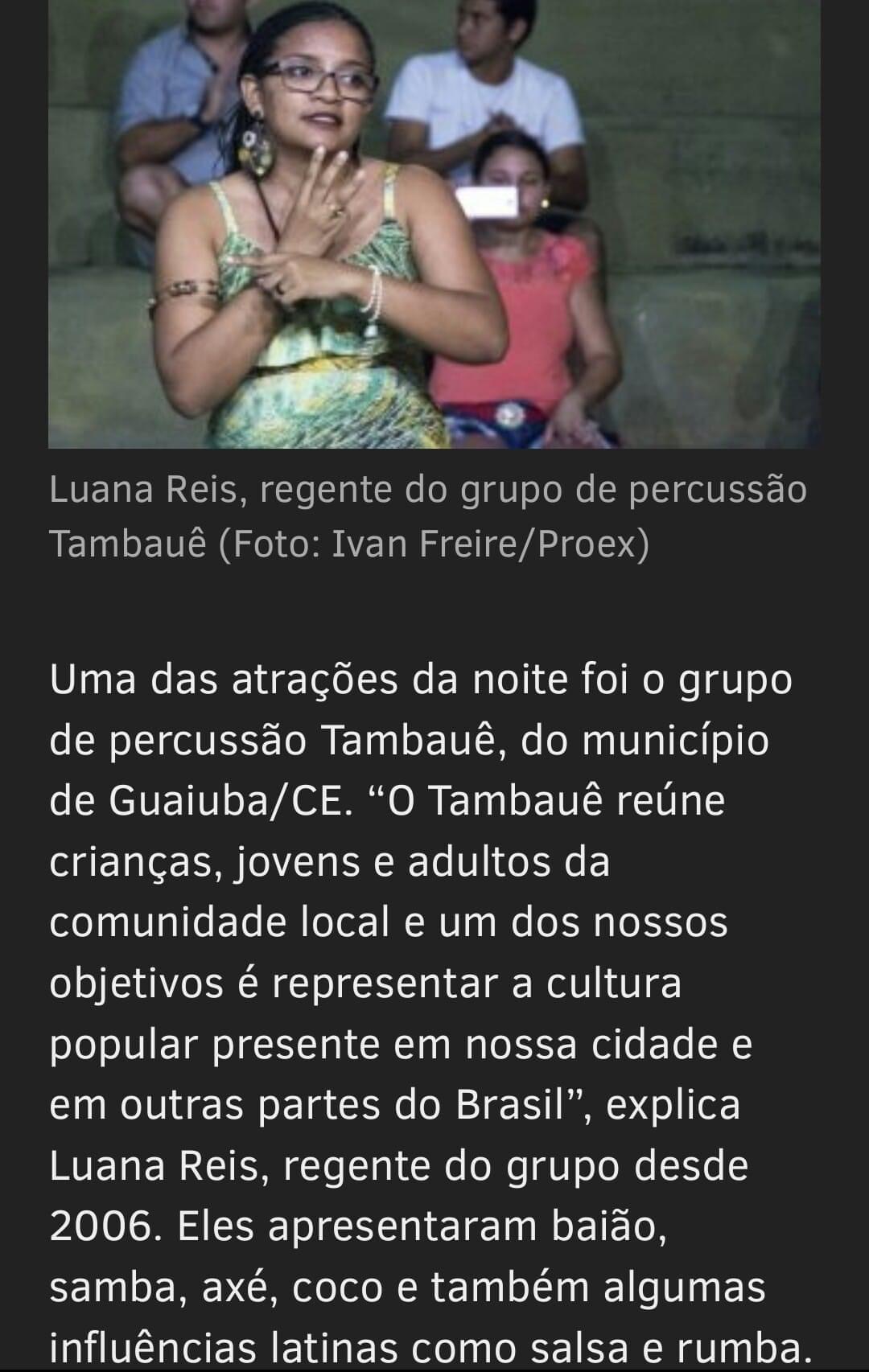 Professora de música e regente do grupo percussivo Tambauê.Vídeos