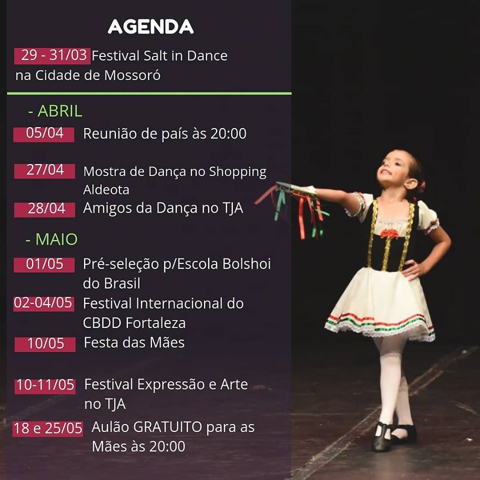 5- Experiências como bailarina: Quebra Nozes (2007), La File Mall Gardeé e Lé Jardim Animeé (2008), Gisele (2009) , A Bela Adormecida (2010), Sylvia (2011), La Bayadère (2012), Dom Quixote (2014), A Grande Valsa de Straussian (2015), O Lago dos Cisnes e Quebra Nozes (2016). Apresentou-se no espetáculo “Giselle” no aniversário de 237 anos da cidade de Sobral no teatro São João. Participou de duas edições do “Eu Danço” e de vários campeonatos nacionais e internacionais. Dividiu o palco com grandes bailarinos, entre eles Ana Botafogo, Francisco Timbó, Filipe Moreira, Deborah Ribeiro.