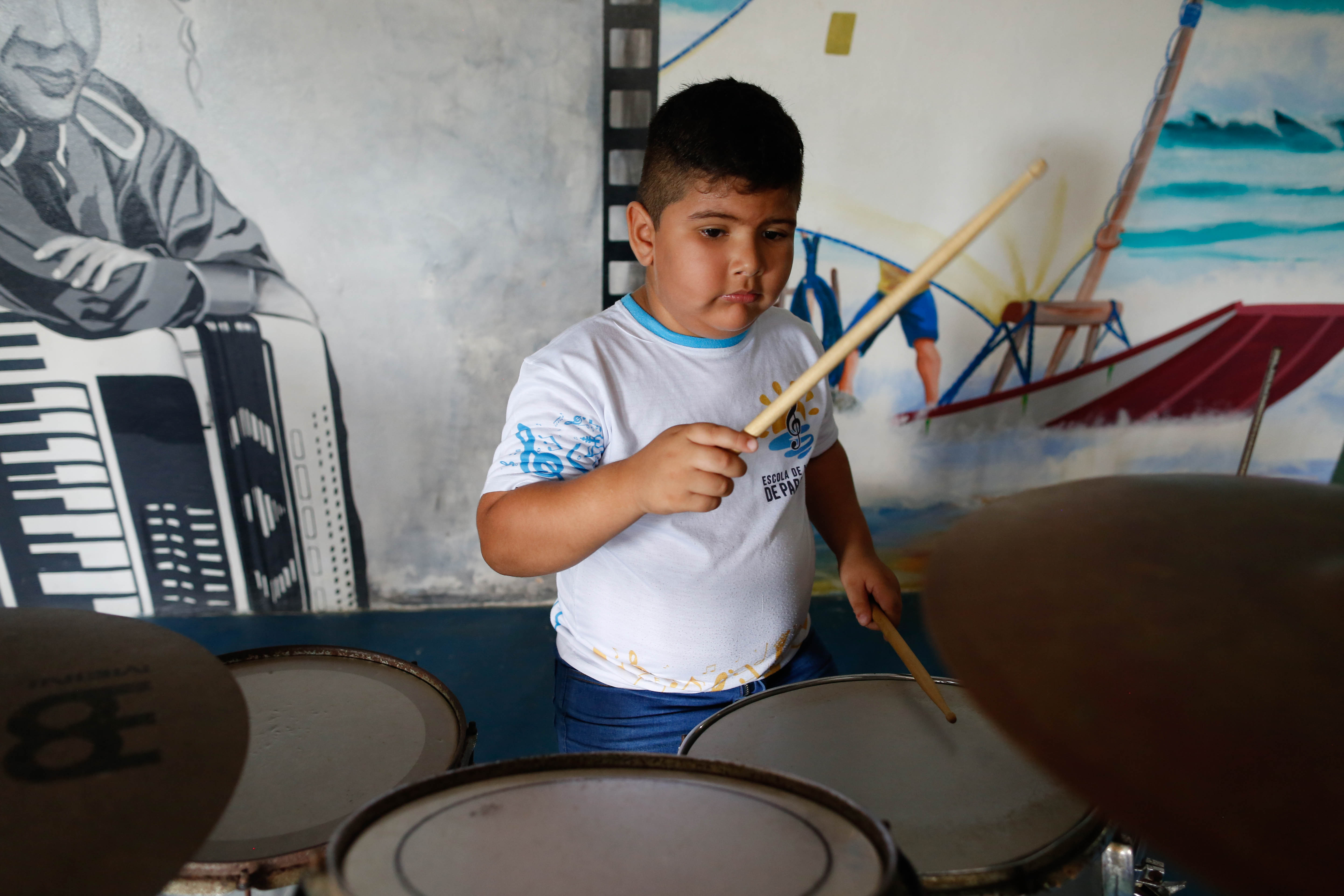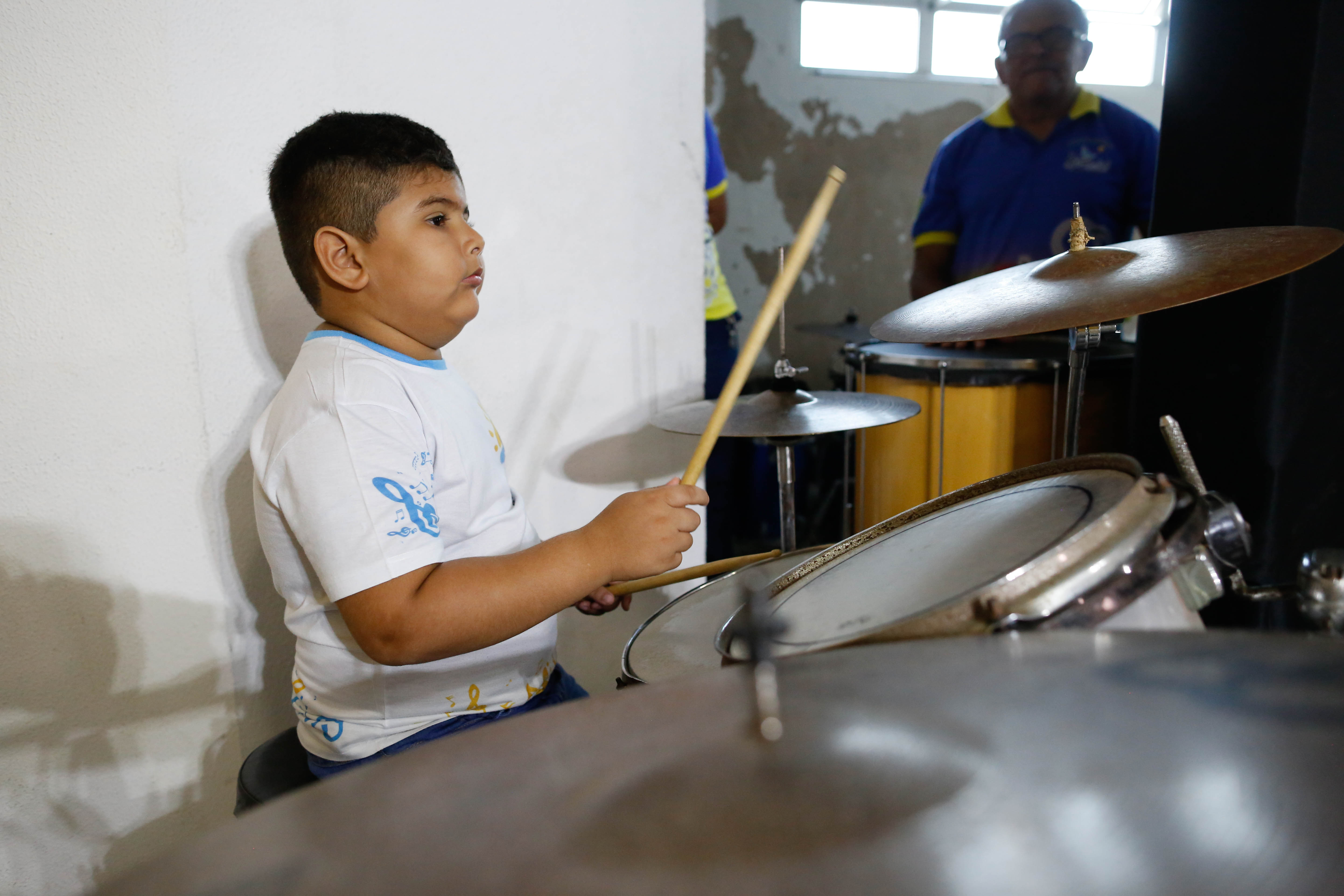 Novos talentos - Guilherme de 06 anos tocando percussão.