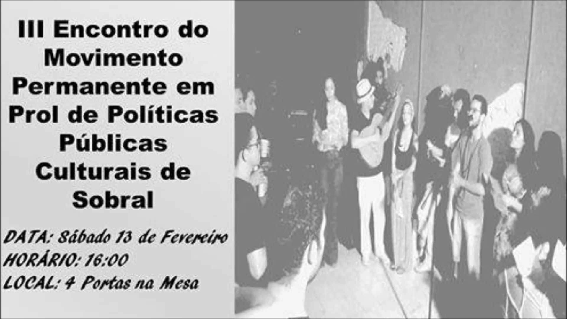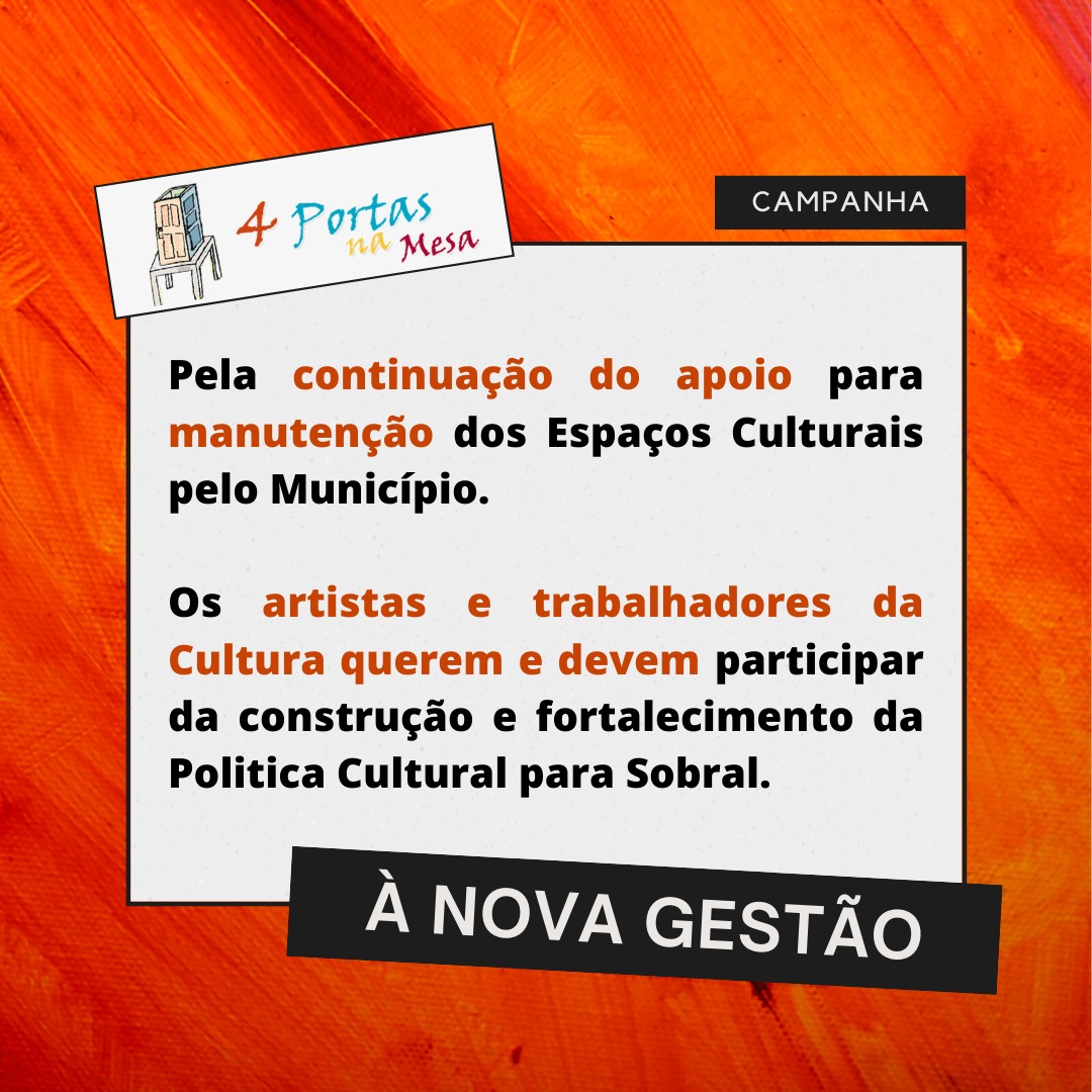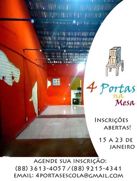 A 4 Portas na Mesa surgiu da reunião de um grupo de amigos no Rio de Janeiro (professores, atores e fotógrafos). Desde 2004, Chico Expedito participa ativamente no movimento teatral em Sobral, ocasião em que montou com elenco sobralense o espetáculo "Esperando Godot" que reinaugurou o Teatro São João. De lá pra cá, sempre esteve em Sobral ministrando cursos, oficinas, etc. Com todo potencial artístico existente em Sobral, porque não realizar um sonho antigo? O de montar a sua própria casa de produção, e a partir dela criar a sua Escola Livre de Teatro, realização quase impossível no Rio de Janeiro.Em 2014 se transfere para Sobral e nesse mesmo ano a casa começa a funcionar. Sua inauguração oficial foi em julho de 2015 com o evento 4 Dias na 4 Portas que envolvia todas as correntes artísticas existentes na cidade: Música, Artes Plásticas, Dança e Teatro. A 4 Portas na Mesa sempre teve a preocupação de fortalecer e dignificar os artistas locais e vai continuar assim.