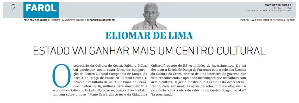 O Centro Cultural Companhia de Dança, está localizado na cidade de Paracuru, distante 98 km de Fortaleza e é composto pelos seguintes espaços;1. Teatro David Linhares