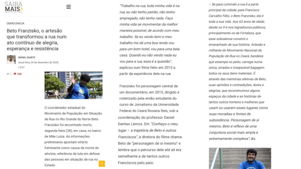 Nos últimos anos, residiu nos municípios cearenses de Baturité, Acarape e Redenção, retornando recentemente para Fortaleza, cidade onde nasceu.