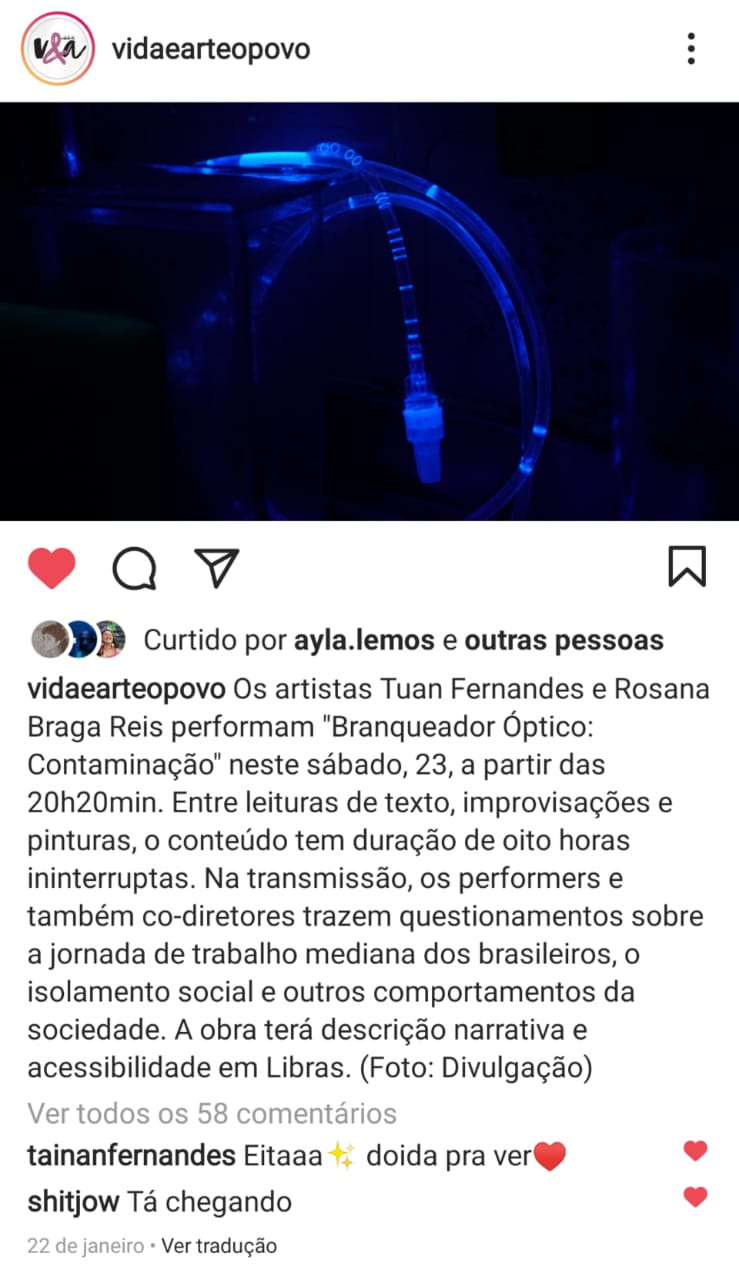 Rosana Braga Reis (35 anos, natural de Fortaleza -CE) trabalha como atriz, dramaturga, preparadora de elenco, comunicadora e realizadora audiovisual. Mestra em Artes pelo Programa de Pós-Graduação em Artes da Universidade Federal do Ceará (UFC) e artista multimídia interessada em cartas, oráculos e documentos. Também é brincante no Maracatu Solar.