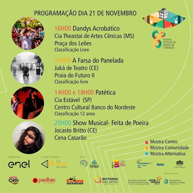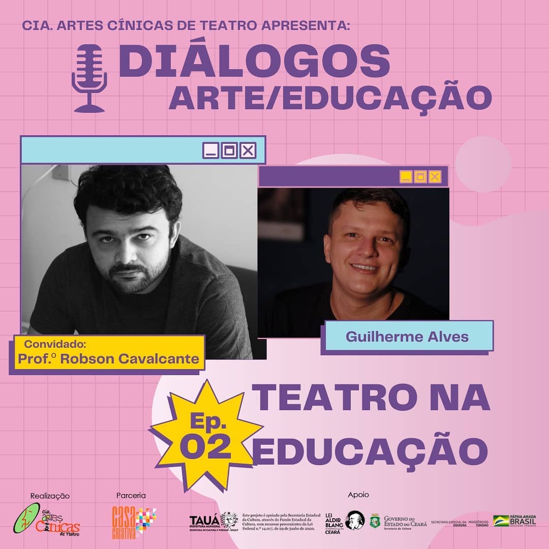 Ator, escritor, produtor cultural, arte-educador e pedagogo de formação acadêmica, Guilherme Alves iniciou sua carreira artística a doze anos no grupo tauaense Artes Cínicas, dirigido por Gilmar Costa, um dos principais nomes do teatro no sertão dos Inhamuns. Em 2017 passou a integrar também o grupo Juká de Teatro do diretor Robson Cavalcante, uma das mais importantes companhias teatrais do interior do estado. Como ator traz em seu currículo espetáculos como as Megeras, Papoulas, a Farsa do Cuviteiro, a Farsa do Panelada, entre outros. Como produtor faz parte, já a quatro edições, da equipe do Festival dos Inhamuns de Circo, Bonecos e Artes de rua, além de atuar como mobilizador cultural junto a escolas do município de Tauá e região.Vídeos