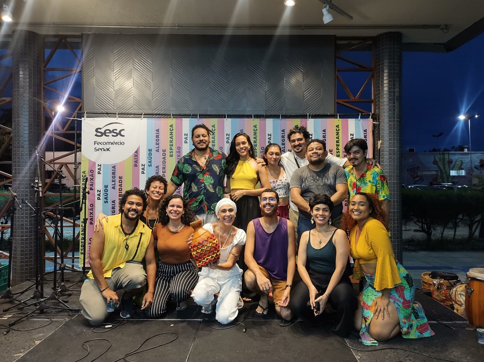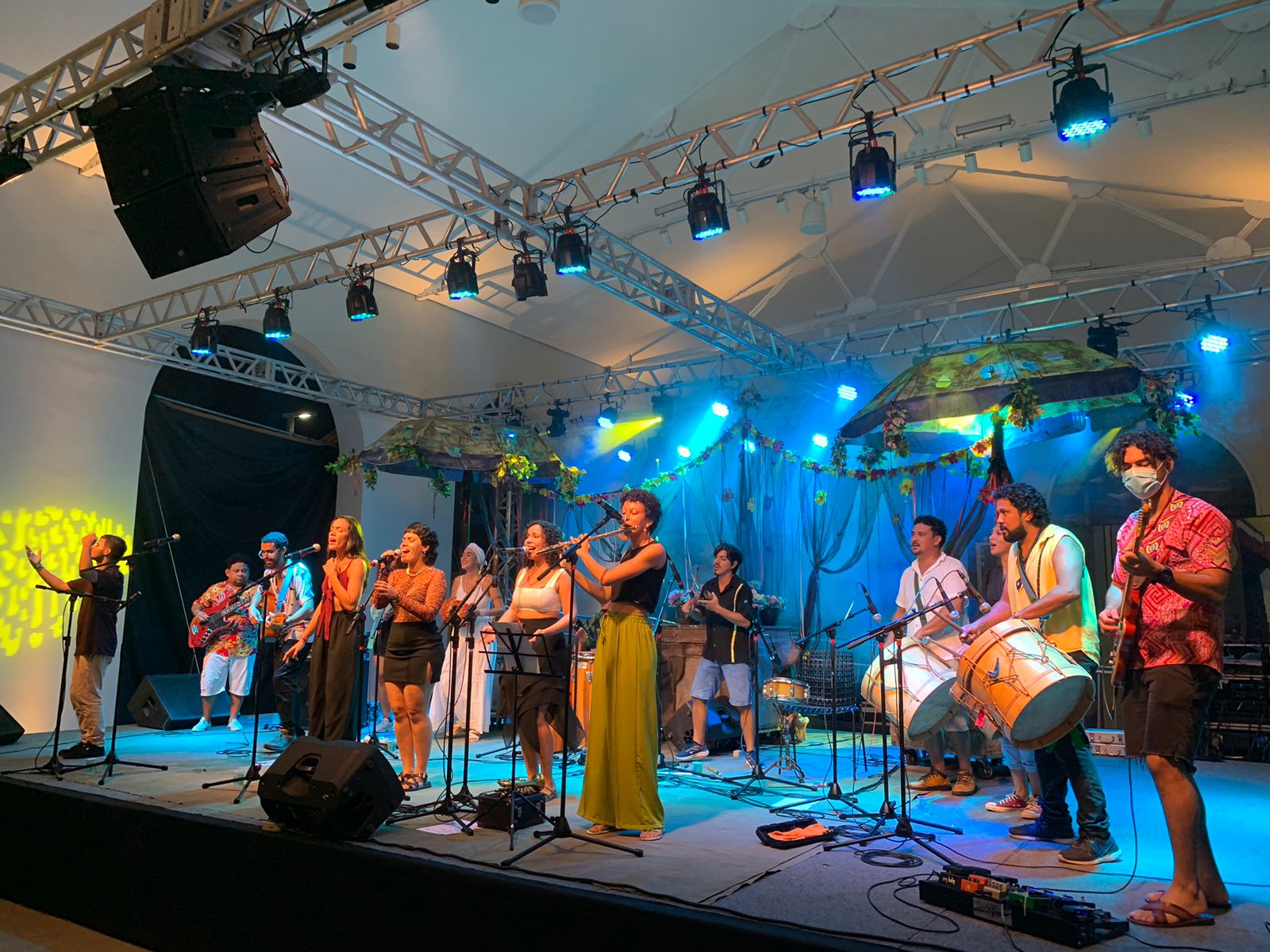 2017 - Orquestra Solar de tambores no fechamento do show espetáculo de lançamento do livro-CDs "Maracatus, Afoxés, Coroações, Rezas e outros Batuques - Inês Mapurunga" - Ana Paula Oliveira está presente no naipe das alfaias