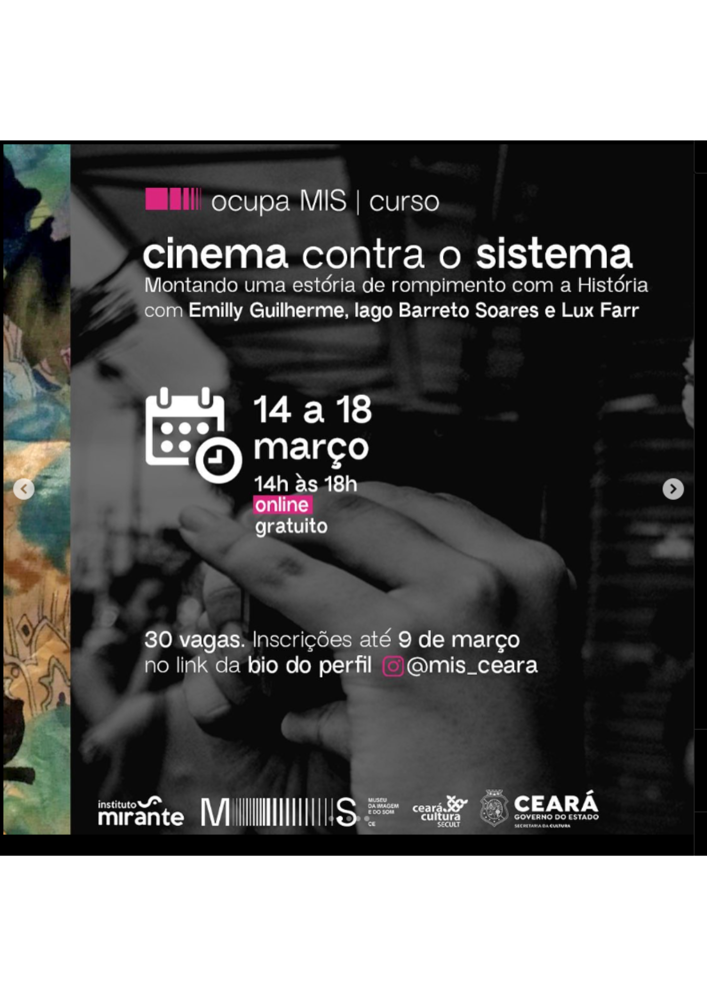 Produção cultural, que envolve organização de eventos cinematográficos como mostras, festivais e atividades de cineclubismo em toda cidade de Fortaleza.
