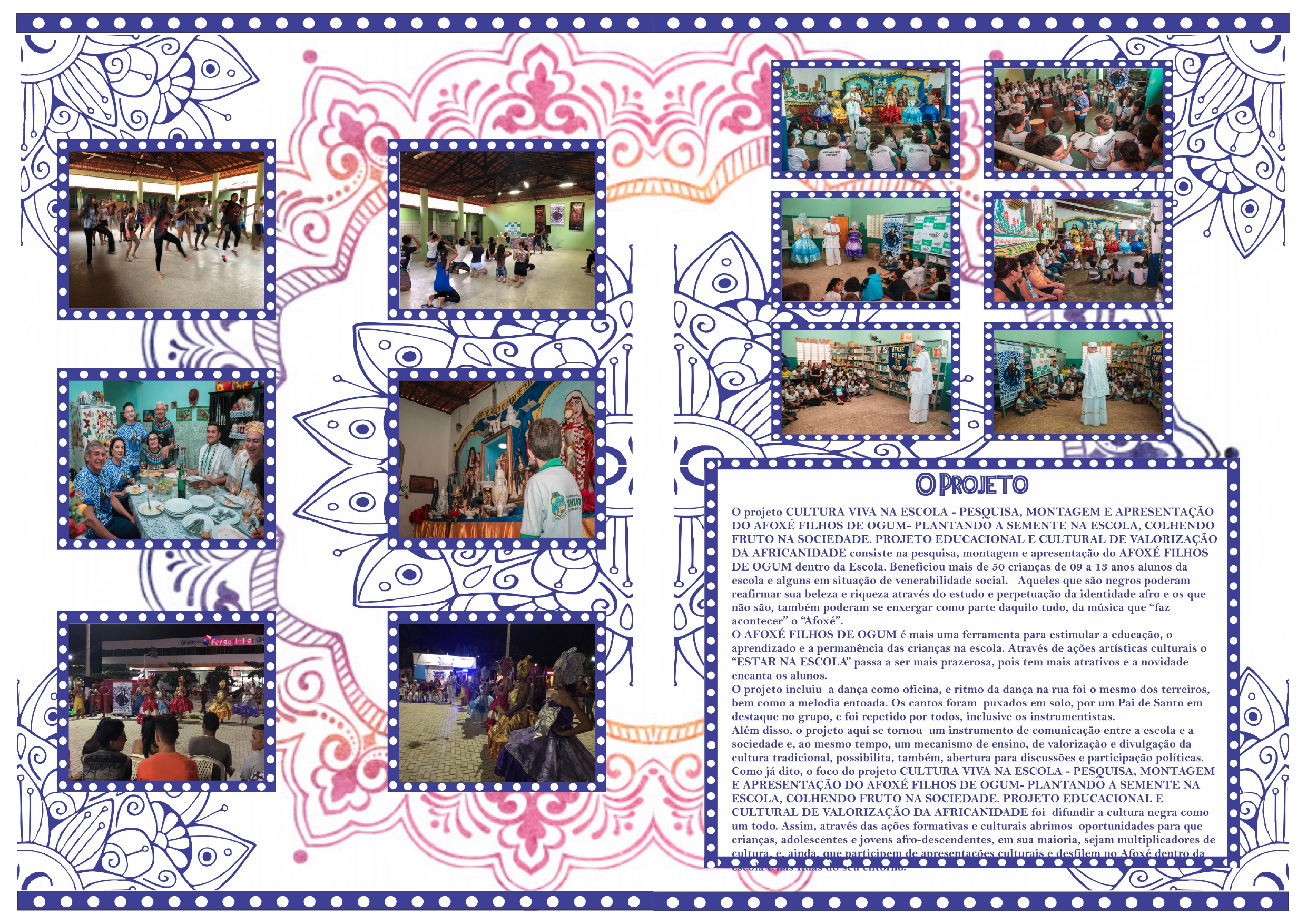 Assim durante todo o ano realizamos ações nos períodos durante o ano fazendo um trabalho de VALORIZAÇÃO DA CULTURA AFRO BRASILEIRA, além da QUEBRA DE PRECONCEITOS e ACEITAÇÃO DA DIVERSIDADE CULTURAL.