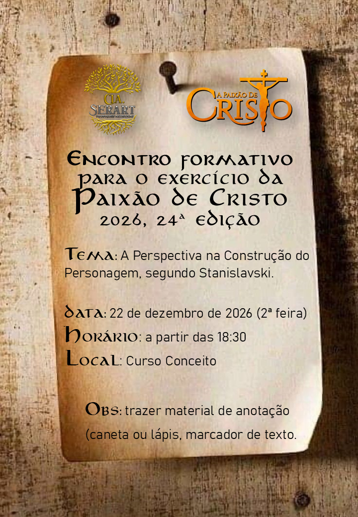 Reflexão da Cia SerArt sobre o ato de fazer a Paixão de CristoPara nós, da Companhia, a Paixão de Cristo não é apenas uma história que encenamos todos os anos. É um caminho que percorremos juntos — artistas, técnicos, voluntários e comunidade — em busca de sentido, humanidade e transcendência. Cada ensaio, cada gesto no palco, cada silêncio e cada palavra pronunciada revelam algo do mistério profundo que atravessa esta narrativa de amor e entrega.