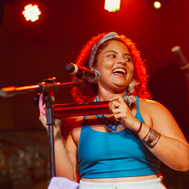 Iniciada na Cultura Popular em 2018 pelo pífano.Brincante e pesquisadora nos coletivos Pifarada Urbana e Coco da Dona Geralda através das danças,cantos,vivências e instrumentos musicais:pífano,triângulo e ganzá.No chacoalhar dessa pisada bonita,enaltecendo a força da ancestralidade.Estudante circense de trapézio fixo aéreo e acrobacia solo. Engenheira civil e pesquisadora na bioconstrução. Roadie.