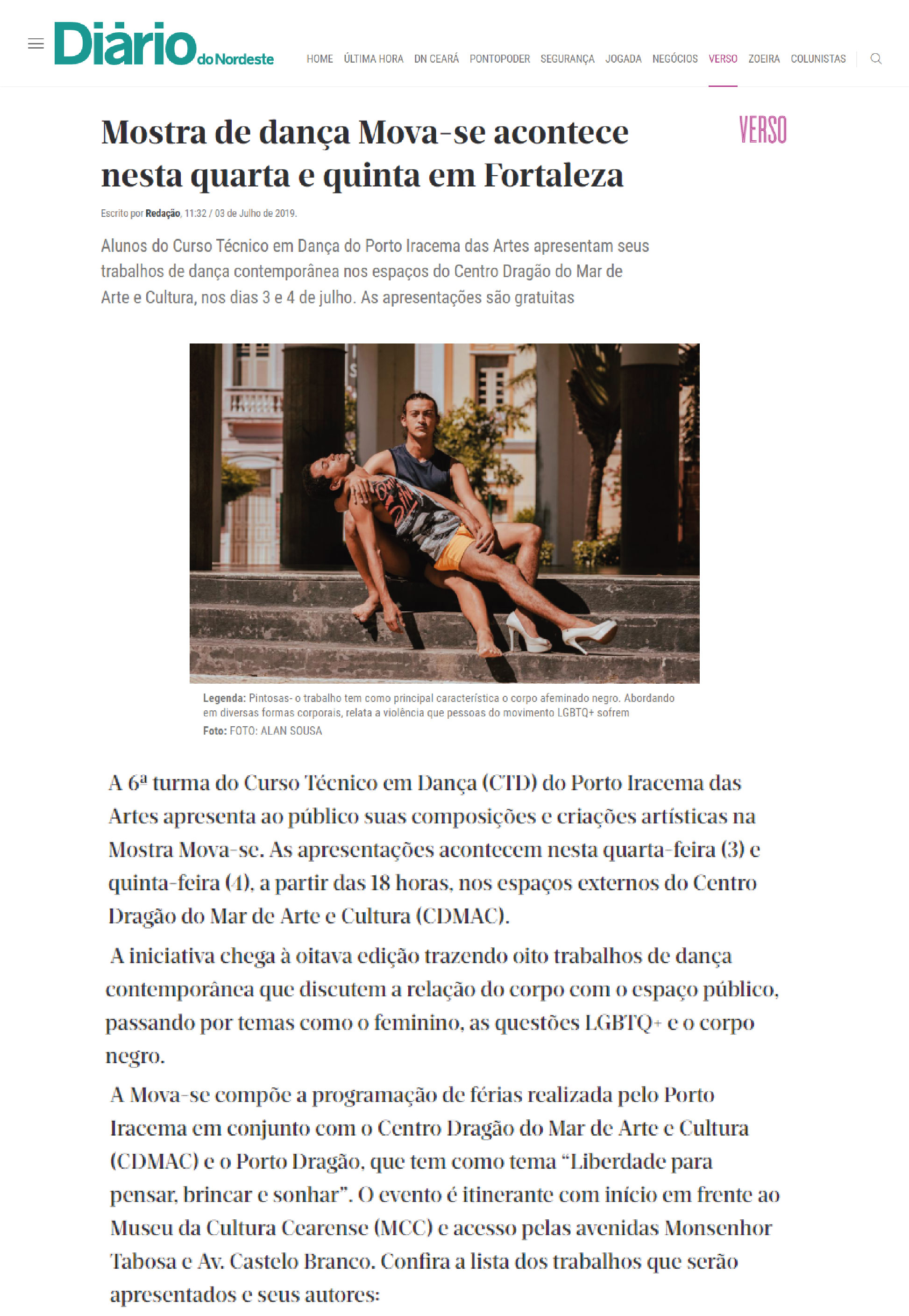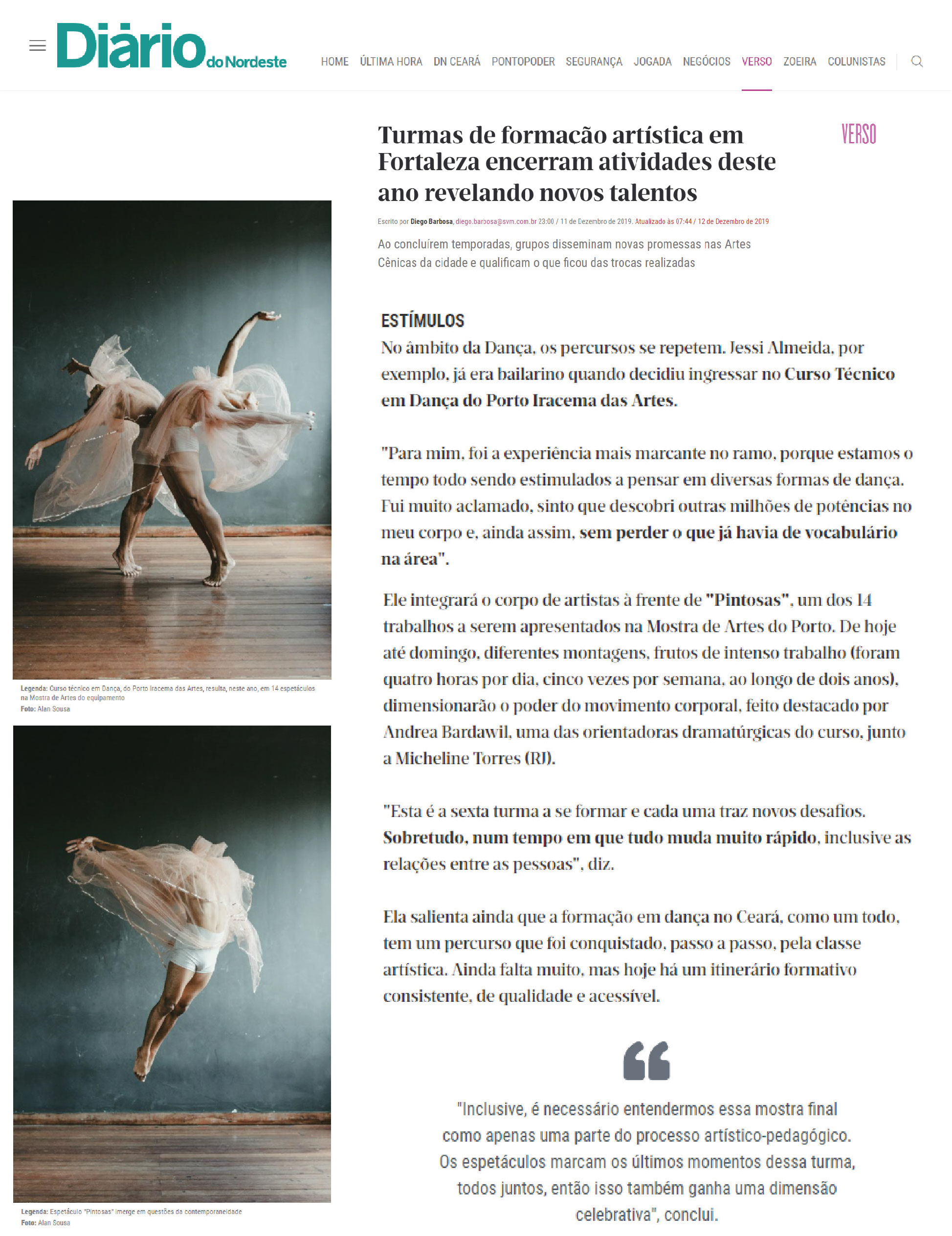 Na conclusão do curso, a performance esteve em cartaz no Teatro Dragão do Mar durante a mostra Modos de Existir (MOPI 7, 2019).