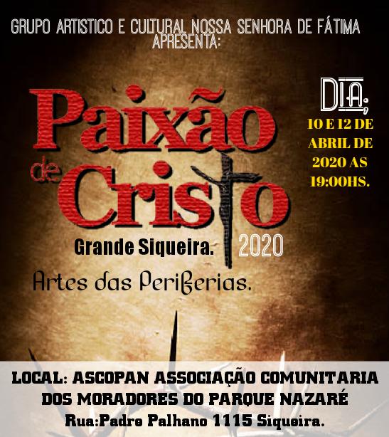 COLETIVO CULTURAL CRIADO EM 2011, NO GRANDE SIQUEIRA EM INTERCAMBIO COM A GRANJA LISBOA, QUE CONSISTE EM AGREGAR JOVENS E ADULTOS EM ATIVIDADES SOCIOCULTURAIS COMO: TEATRO, DANÇA E MUSICA, QUE REALIZA A PAIXÃO DE CRISTO DO GRANJA LISBOA - ARTES NAS PERIFERIAS.FAIXA ETARIA 14 A 33 ANOS