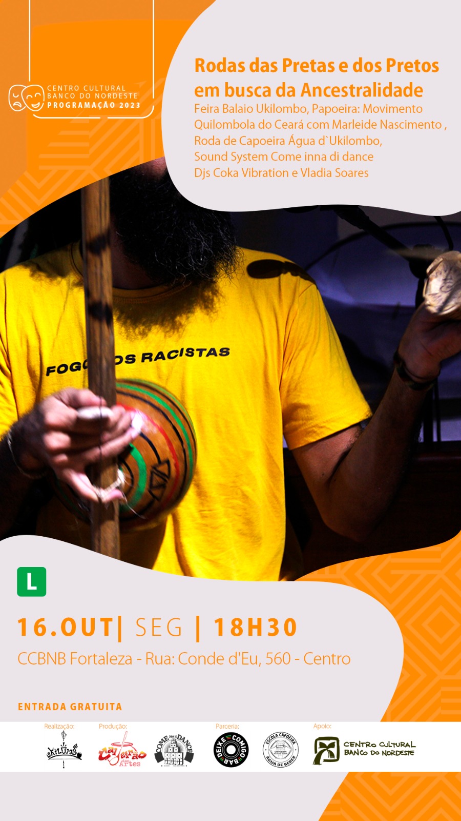 No Ukilombo também é responsável pelas articulações e produções de todas as atividades que o grupo desenvolve.