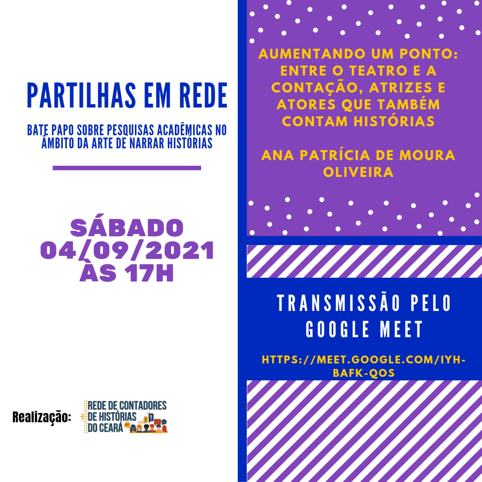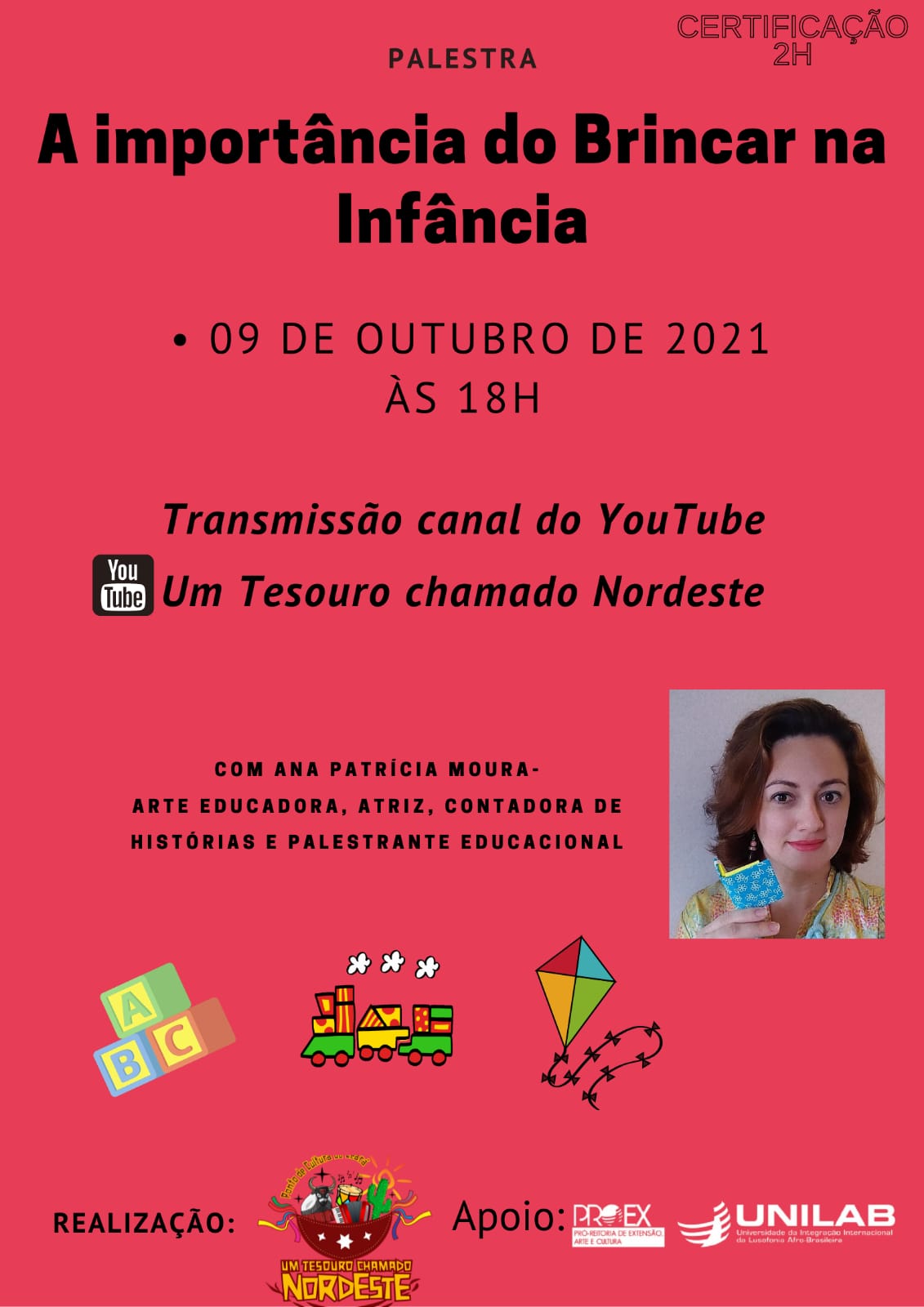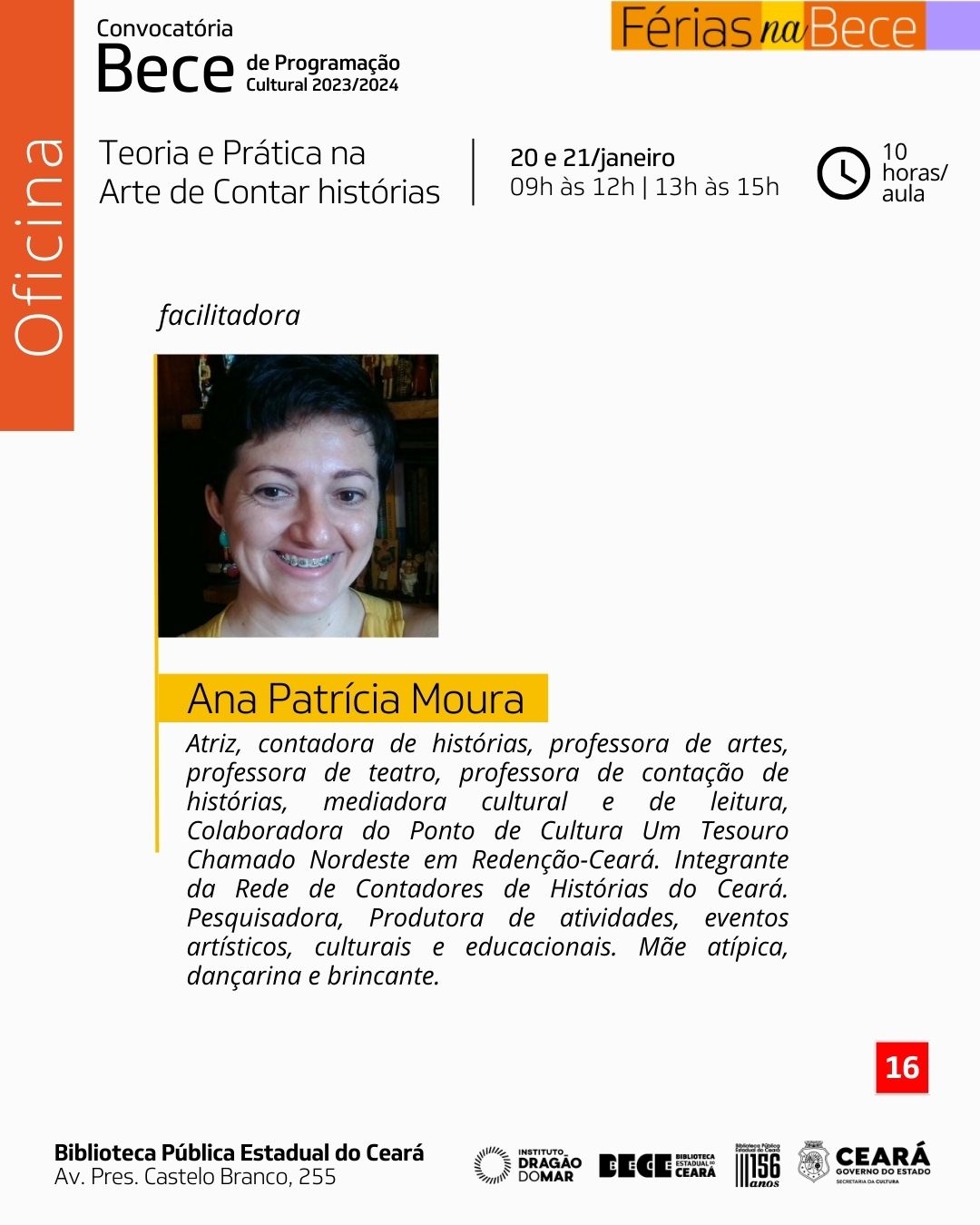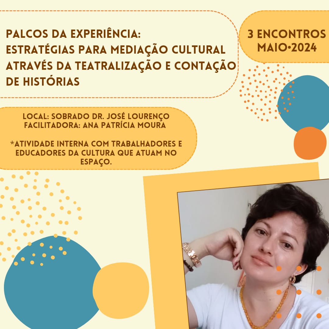 Ana Patrícia Moura;Atriz, contadora de histórias, dançarina, brincante, pesquisadora e professora de teatro, contação de histórias e artes.