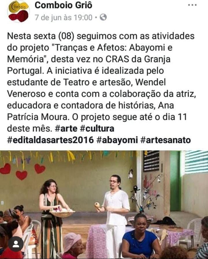 Ana Patrícia Moura Produção e Facilitação da Oficina Preparação e Performance na Contação de Histórias Ponto de Cultura Um Tesouro Chamado Nordeste