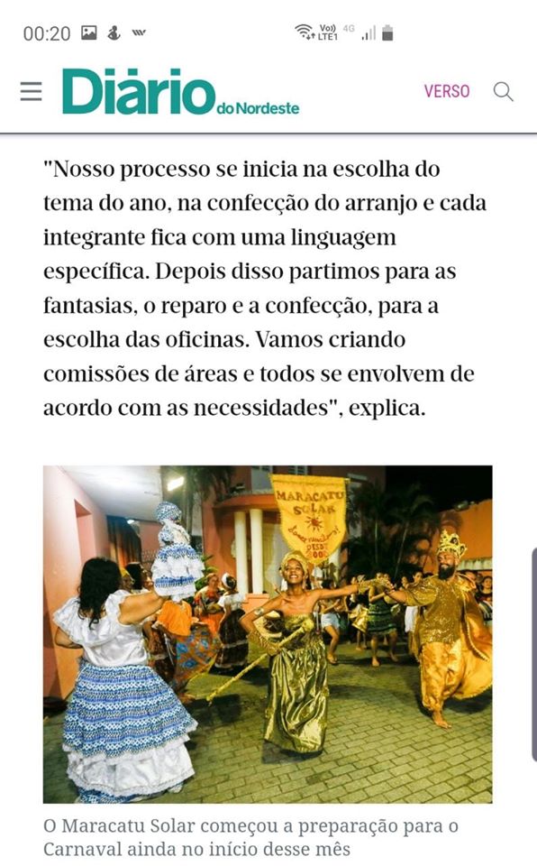 É Rainha do Maracatu Solar e percussionista no Afoxé Oxum Odolá e Afoxé Acabaca (Fortaleza CE), desenvolve trabalhos como assistente de produção, performance, atuações, ensino e facilitação de danças populares tradicionais e afro-brasileiras.