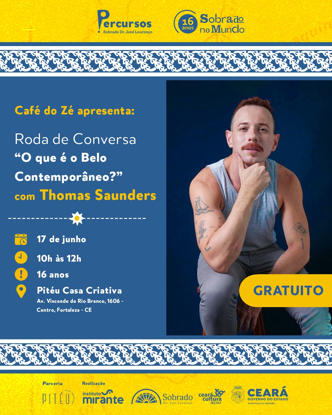 Thomas Saunders possui graduação em Publicidade e Propaganda pelo Centro Universitário 7 de setembro (2014) e mestrado em Comunicação pela Universidade Federal do Ceará (2017). Atuou como professor substituto em Artes Visuais (licenciatura) na Universidade Estadual do Ceará (FECLI - Campus Avançado de Mombaça). Atualmente, é graduando em Filosofia (licenciatura) pela Universidade Estadual do Ceará (desde 2018). Pós-graduando em Gestão e Coordenação Pedagógica pela UNIATENEU (2022); Residente Pedagógico em Filosofia na EEEPJN - Escola Estadual de Ensino Profissionalizante Joaquim Nogueira (2023). Participou da Temporada Formativa em Artes Visuais, do Laboratório em Artes Visuais, na Escola Porto Iracema das Artes (2019); Professor; Designer Gráfico e Artista Visual Independente.No universo publicitário, atuou como Designer Gráfico, Atendimento Publicitário e Produtor de Eventos.