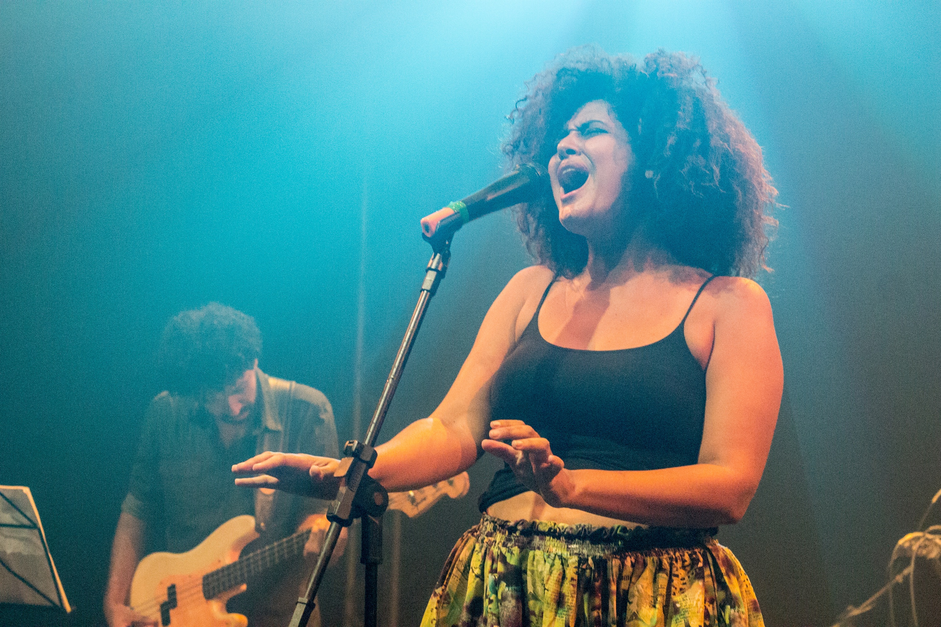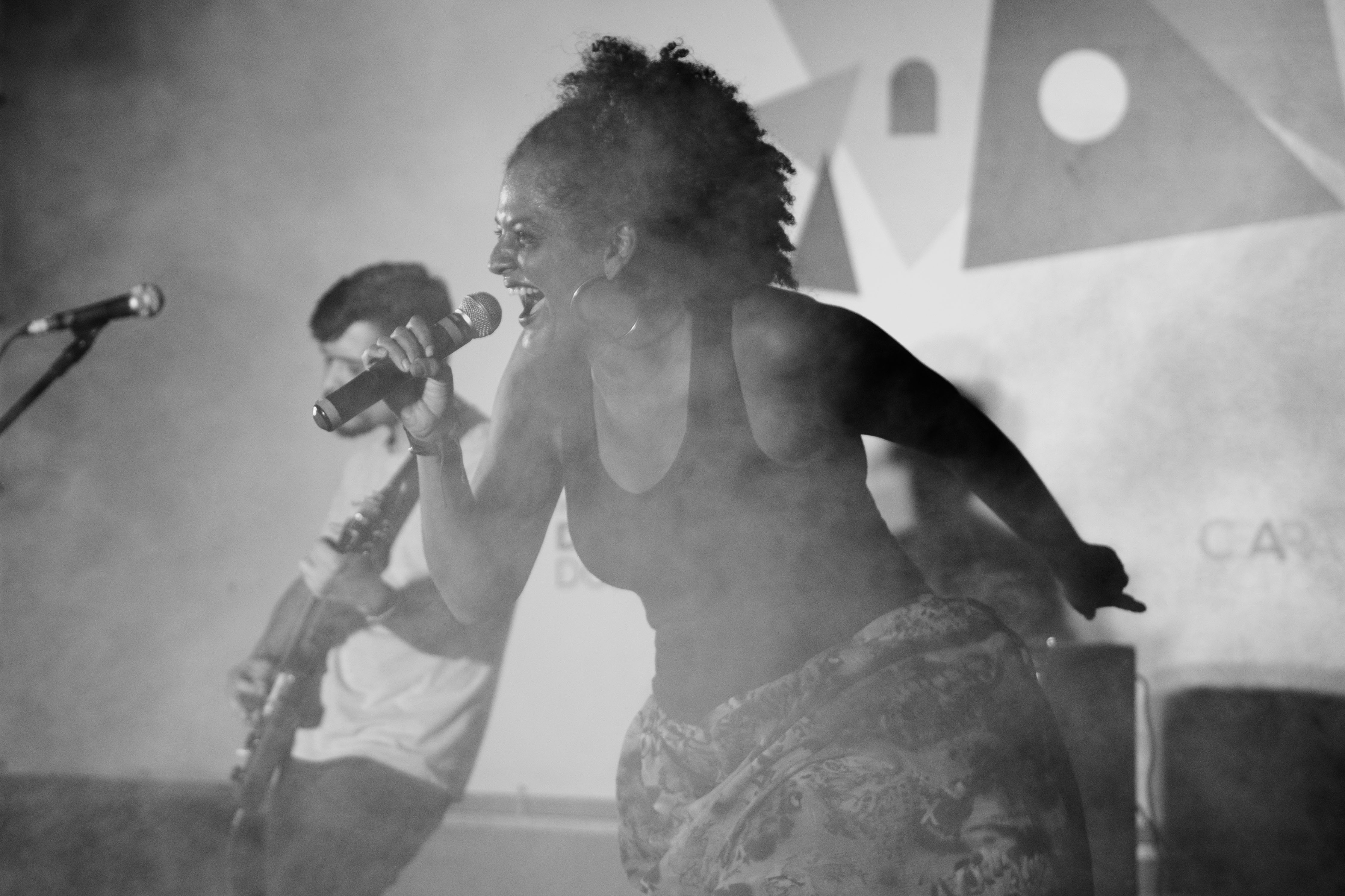 Simone Sousa, com sua inegável paixão pela música, tem feito um trabalho notável ao levar suas composições para o palco, proporcionando ao público a oportunidade única de experimentar suas músicas ao vivo. Seus shows são conhecidos por serem muito mais do que simples apresentações musicais. Eles são experiências imersivas, um convite para os espectadores mergulharem na rica tapeçaria de suas composições. Ela compartilha não apenas suas canções, mas também a energia palpável e a emoção que as acompanham. A artista tem uma presença cênica marcante, que, combinada com sua música, cria um espetáculo memorável para os espectadores. Cada apresentação cria um entrelaçamento de narrativas emocionais e musicais com narrativas que fluem através de melodias e movimentos.