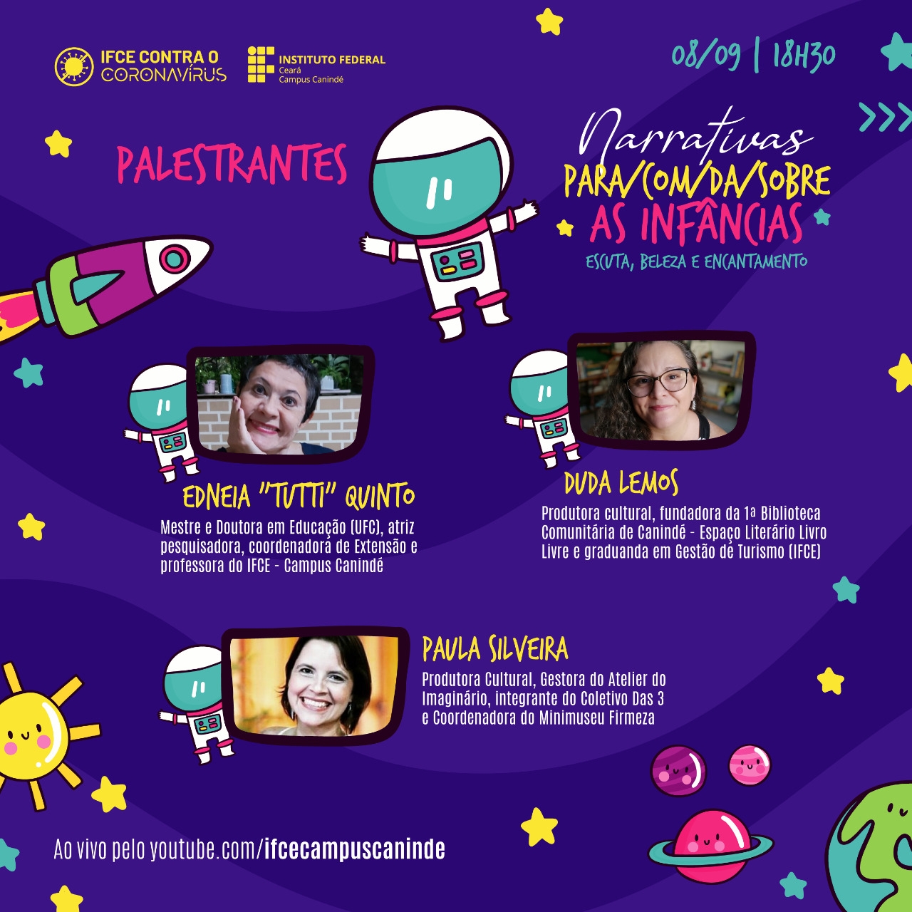 Com mais de 20 anos de experiência em eventos culturais e científicos, tem um vasto currículo na área. Formada em Administração de Empresas pela Universidade Federal do Ceará (2000), é Técnica em Produção Cultural pelo CENTEC e UVA (2017) e especializada em Gestão de Projetos pela Universidade Vale do Acaraú (2015) e Gestão Cultural pela Universidade Estadual do Vale do Acaraú (2019). Ministra cursos e oficinas acerca dos temas Produção Cultural, Logística para Eventos e Modelagem de Projetos.