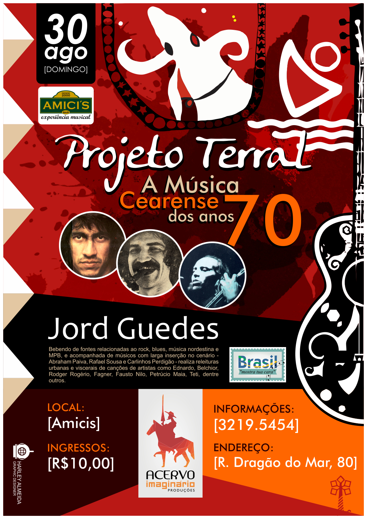 No Acervo Imaginário Bar Cultural, produziu o Oi Blues By Night (da Oi), por onde passaram artistas como Celso Blues Boy (Rio de Janeiro), Donny Nichilo (Chicago), Eddie C. Campbell (EUA) e Lancaster (SP). Outras produções foram o cantor Curumin (SP), Pantico Rocha (CE), Banda Seu Chico (PE), Luxo da Aldeia (CE), Armandinho (do trio elétrico Armandinho, Dodô e Osmar-BA), Kid Vinil (SP), Artur Menezes (CE), Os Alfazemas e Os Transacionais, duas das melhores bandas de Fortaleza. Com Os Transacionais segue em uma parceria de 10 anos, onde, ao longo desse tempo, fazem a Festa dos Sem Namorados, que em 2018 terá sua 10ª edição.