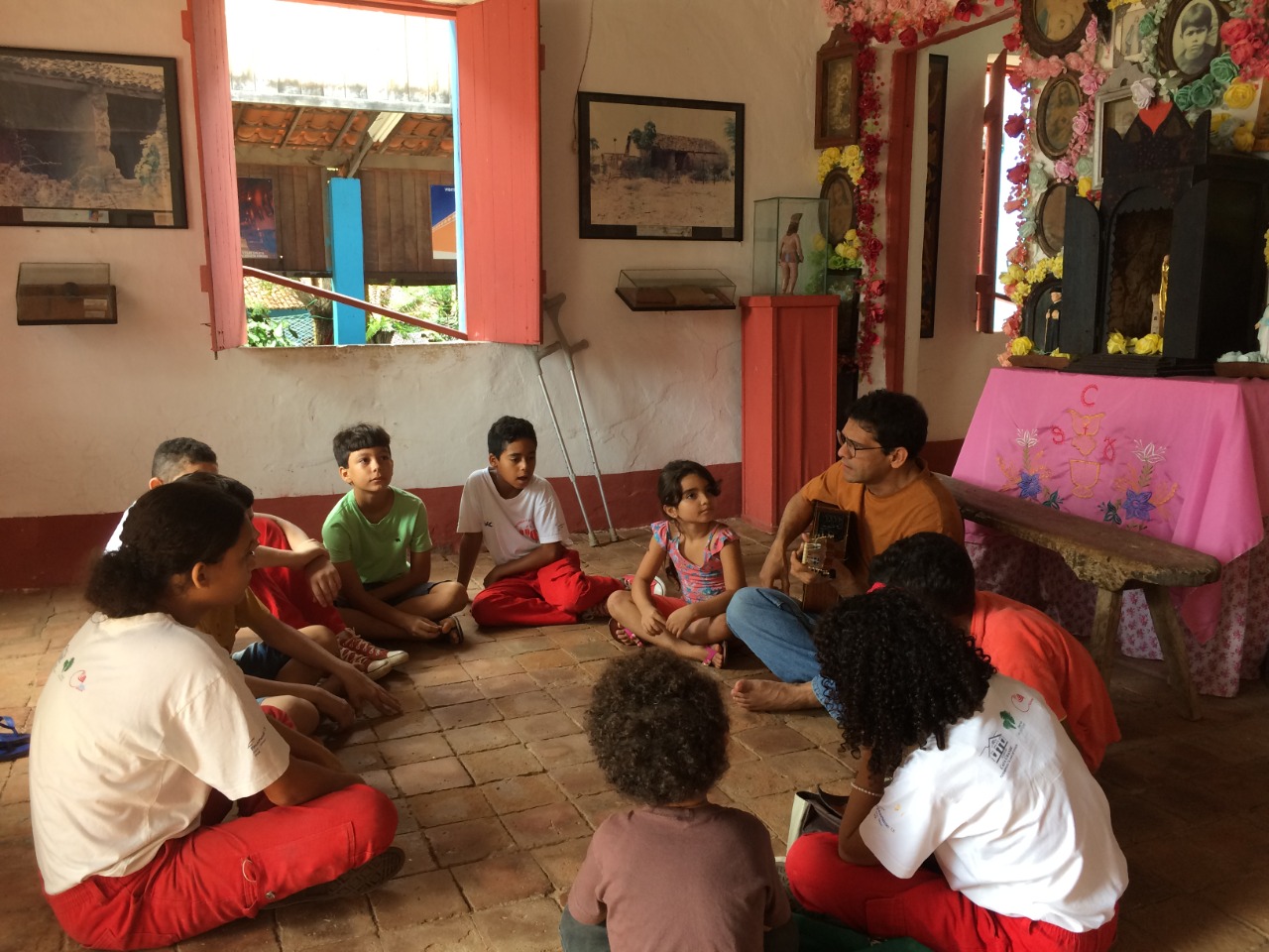 Rosiane canta com as crianças da Casa Grande