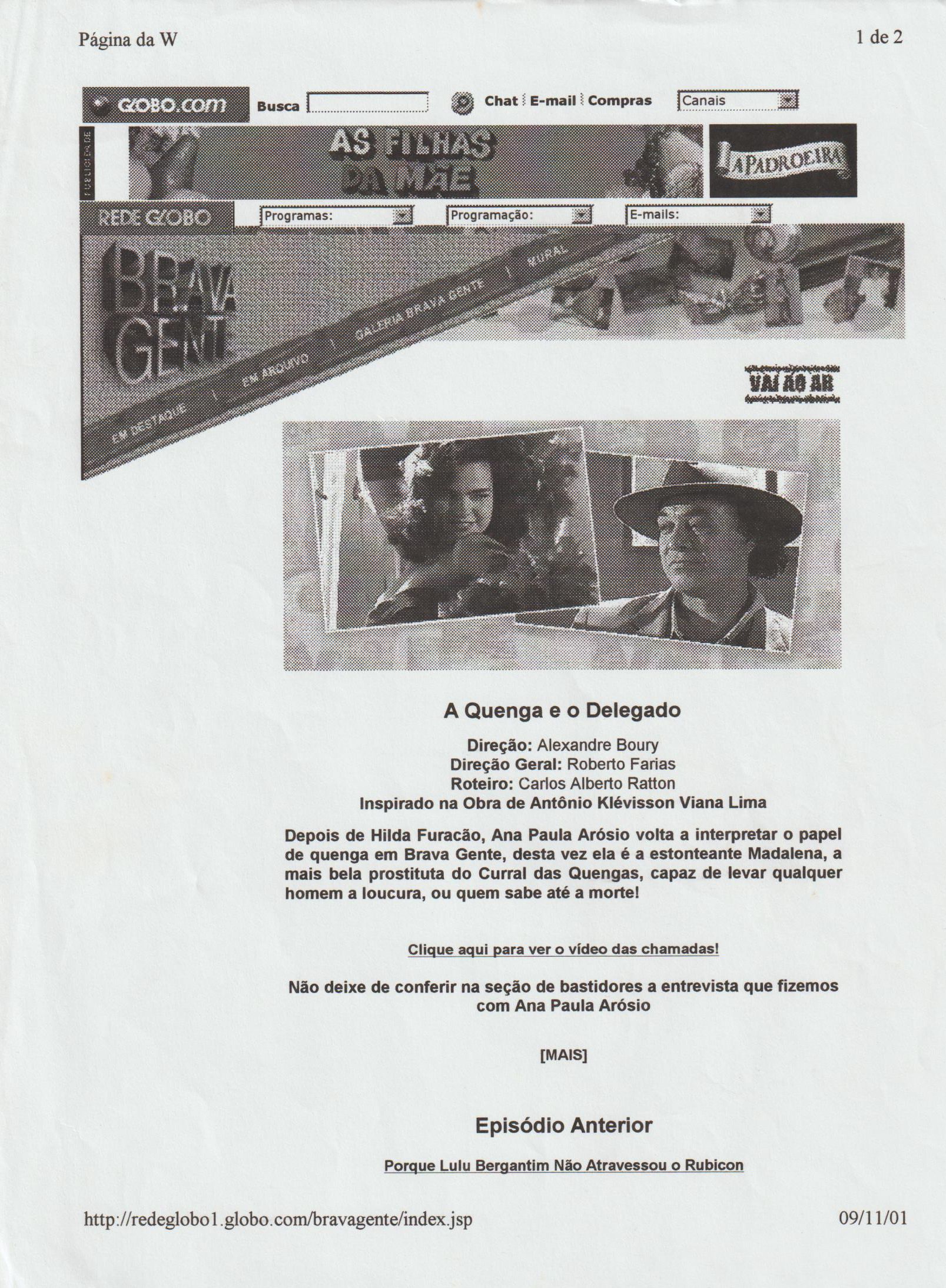 (Episódio da série Brava-Gente – Rede Globo, 13 de novembro de 2001)