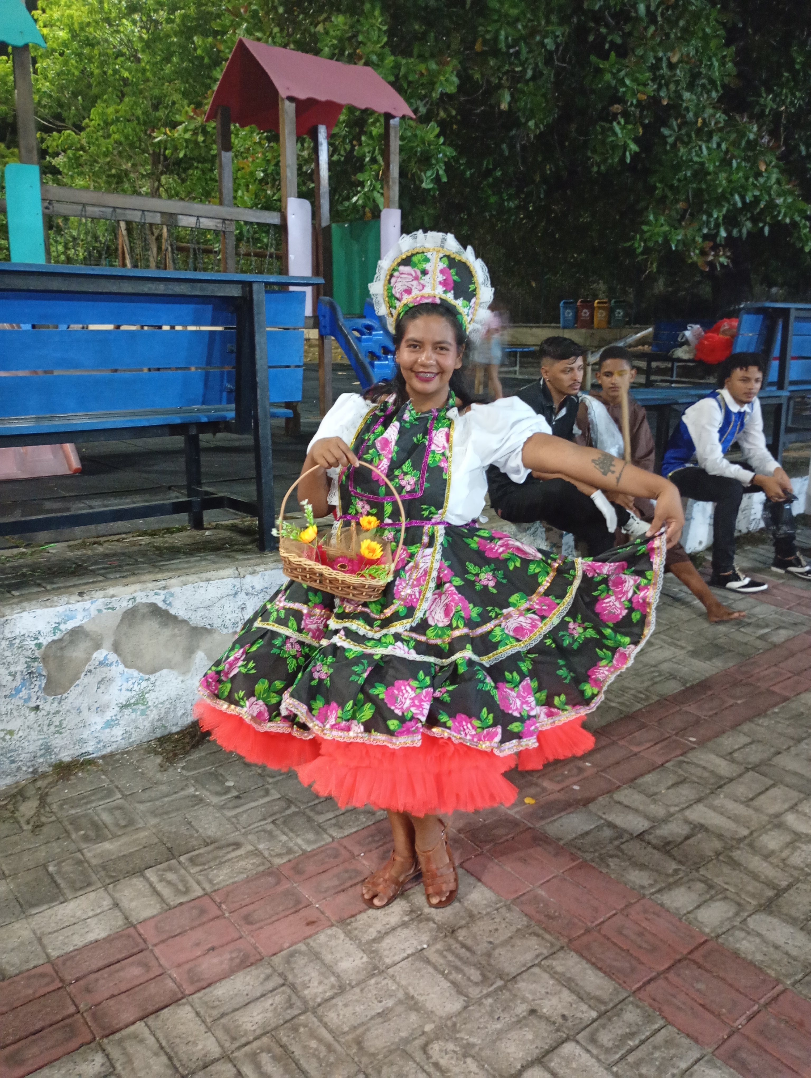 sou brincante de quadrilha desde criança, brincante do pastoril estrela da anunciação, faço trabalho de produção cultural e atuo como brincante e noiva de quadrilha junina.