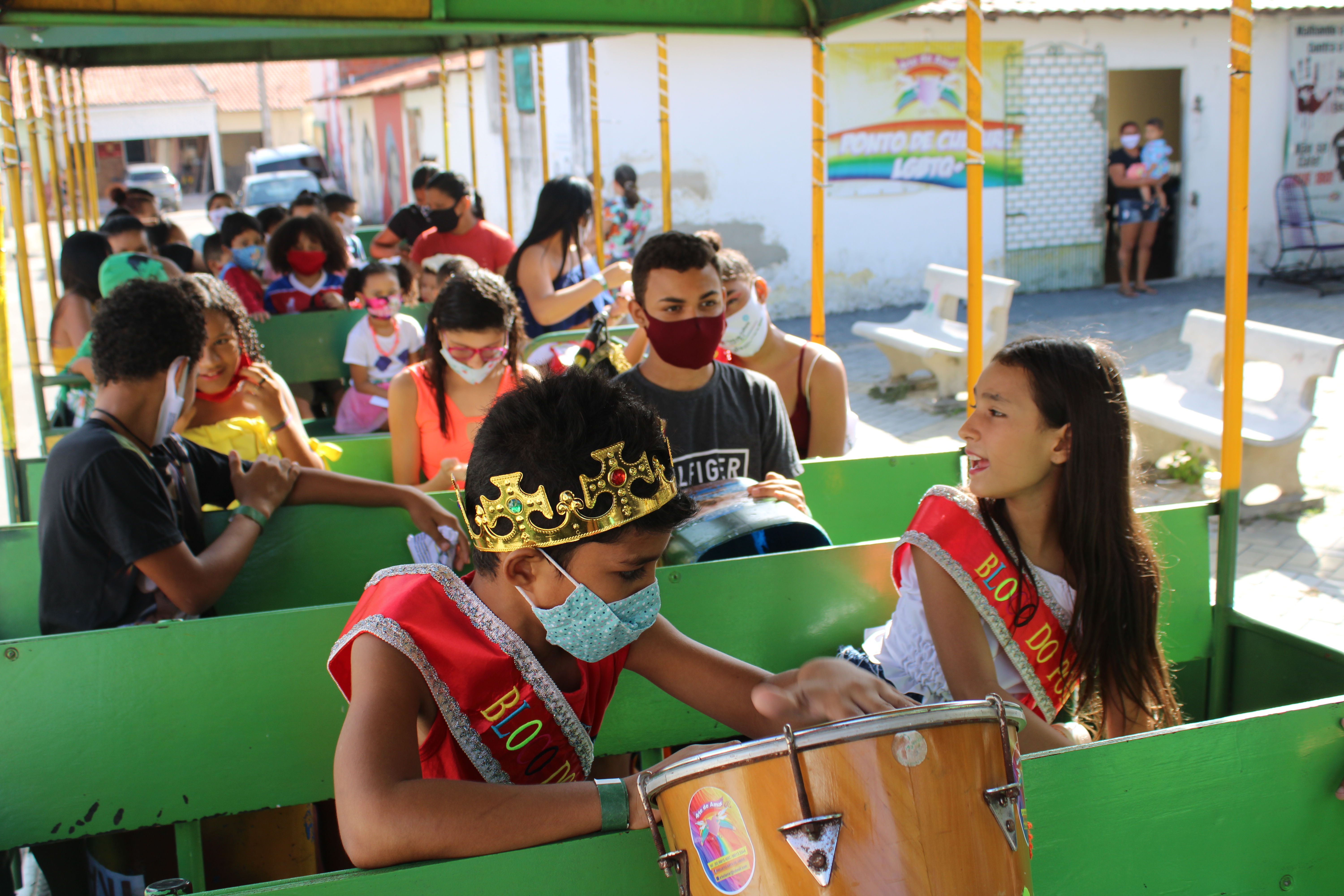Em 2010 com o sucesso do Bloco adulto iniciamos as atividades carnavalescas com a criação do Bloco do Pontinho de cultura em parceria com o Ponto de Cultura LGBTQIA+ arte de amar e o apoio do Grupo Cultural recebemos o apoio da Bandinha de lata do projeto art’ lata ensaios e apresentações na Comunidade do Curió, nos quais os ensaios são realizados na praça 11 de Novembro ou nos estúdios da TV WEB Arte de amar as promoção das apresentações são utilizados materiais de divulgação e mídias sociais ofertamos as crianças e acompanhantes lanches e material de proteção higiene e limpeza . No ano de 2014 foi vencedor no Edital da SECULT.CE BLOCO DO PONTINHO . E em 2016 também em edital da SECULT.CE Canta Curió em 2016, provando seu desempenho na execução das atividades. Nossa parcerias com os Blocos adultos REKENGELAS da Beira Mar que mudou o nome para REKENGUELAS do Curió e atualmente Bloco vai tomar no Curió formado por famílias das crianças atendidas na ONG União do Povo de Santa Edwiges e nos oferece total apoio.Neste sentido, diante da necessidade de valorização das competências familiares, visando fortalecer e proteger os vínculos familiares, enfatizando a discussão dos direitos da cidadania, organização comunitária e melhoria da qualidade de vida, é imprescindível o atendimento das famílias através de projetos que estimulam o envolvimento e o comprometimento no sentido de compartilhar o processo, incentivando a formação de vínculos de afeto e segurança através do acesso as informações educativas.