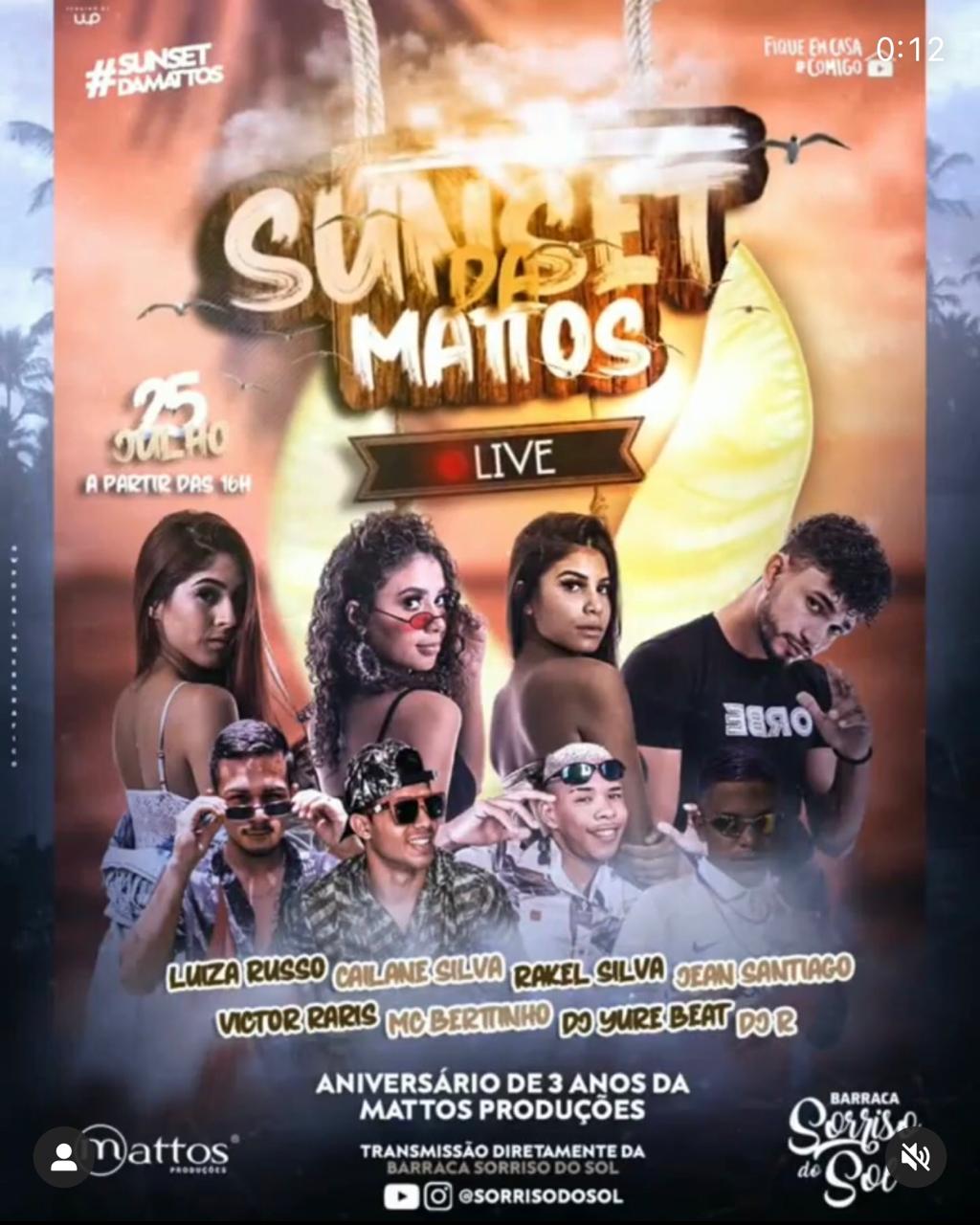 A Live Sunset da Mattos aconteceu no dia 25 de Julho de 2020 na barraca Sorriso do Sol, na Praia do Futuro em Fortaleza/CE e marcou o início das atividades de comemoração de 3 anos de existência da Mattos Produções.