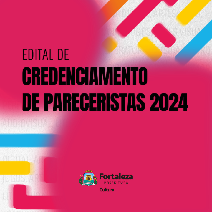 A SECRETARIA MUNICIPAL DA CULTURA DE FORTALEZA (SECULTFOR) DIVULGA A CHAMADA PÚBLICA DE NÚMERO P099419/2024 PARA CREDENCIAMENTO DE PESSOAS FÍSICAS E MICROEMPREENDEDORES INDIVIDUAIS (MEI), PARA FORMAÇÃO DE BANCO DE PARECERISTAS PARA EVENTUAL ANÁLISE DE PROJETOS COM EMISSÃO DE PARECER TÉCNICO EM RELAÇÃO AOS PROJETOS CULTURAIS APRESENTADOS NO MBITO DOS EDITAIS DA SECRETARIA MUNICIPAL DA CULTURA DE FORTALEZA.