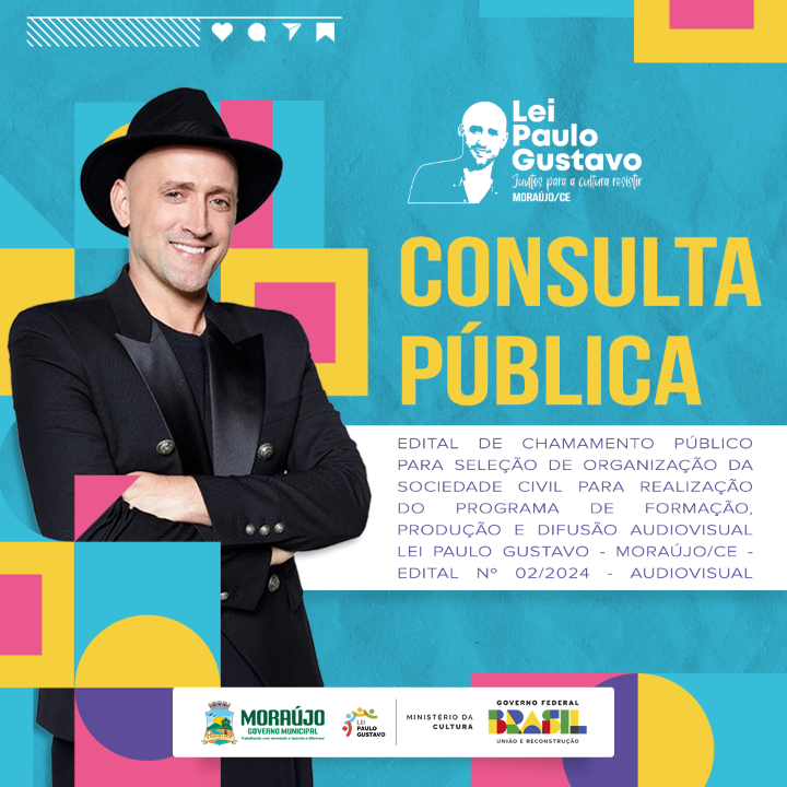 EDITAL DE CHAMAMENTO PÚBLICO PARA SELEÇÃO DE ORGANIZAÇÃO DA SOCIEDADE CIVIL PARA REALIZAÇÃO DO PROGRAMA DE FORMAÇÃO, PRODUÇÃO E DIFUSÃO AUDIOVISUAL LEI PAULO GUSTAVO - MORAÚJO/CE - EDITAL Nº 02/2024 - AUDIOVISUAL