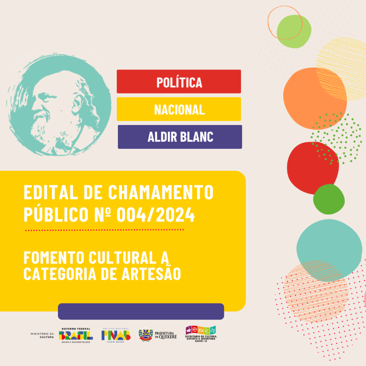 EDITAL DE CHAMAMENTO PÚBLICO Nº 04/2024 – EDITAL DE FOMENTO CULTURAL A CATEGORIA DE ARTESÃO COM RECURSOS DA POLÍTICA NACIONAL ALDIR BLANC DE FOMENTO À CULTURA - PNAB (LEI Nº 14.399/2022)